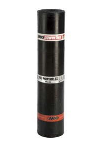 SBS bættur asfaltdúkur (þakpappi) með 180 gr/m2 polyester-glertrefja styrktarmottu. IKO powerflex 4 AD/F ICE er UV-þolinn yfirlagsdúkur með dökk gráum steinmulningi.